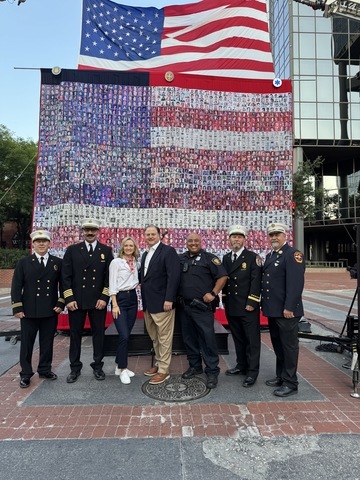 City Center displayed a 20x20 quilt featuring the American flag comprised of individual photos of those who perished on 9/11.